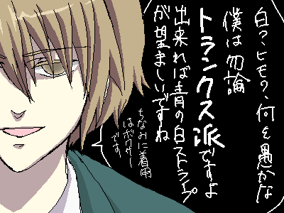 古泉の髪の毛は面倒くさい分書き込みがいっぱいできるのでだいすけです(本当は少女漫画の髪の毛位やってみたい)