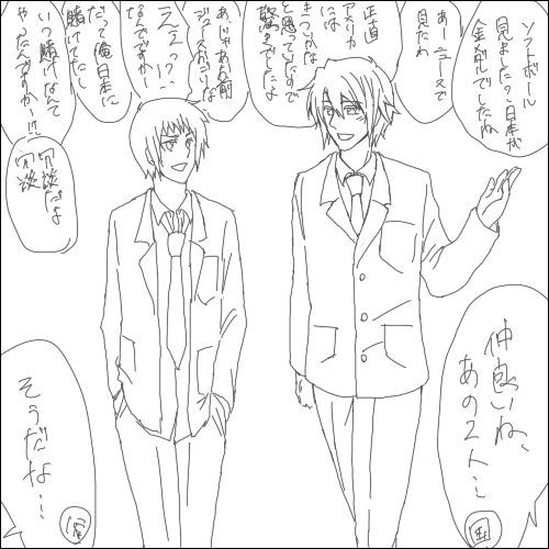 それと絵といえばで気付いたんですがわたしが使ってるOSはビスタなんですが、先日みかんの家に行った時みかんのPCを使わせてもらったらXPでして、XPで自分の絵を見たら古泉の髪が結構黄色っぽくなっているのを知りました